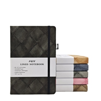 Cuaderno de cuero transfronterizo A5 Correa Superficie dura Patrón de tela Ledger Logotipo impreso Bloc de notas Libro DE REGISTRO DE REUNIONES